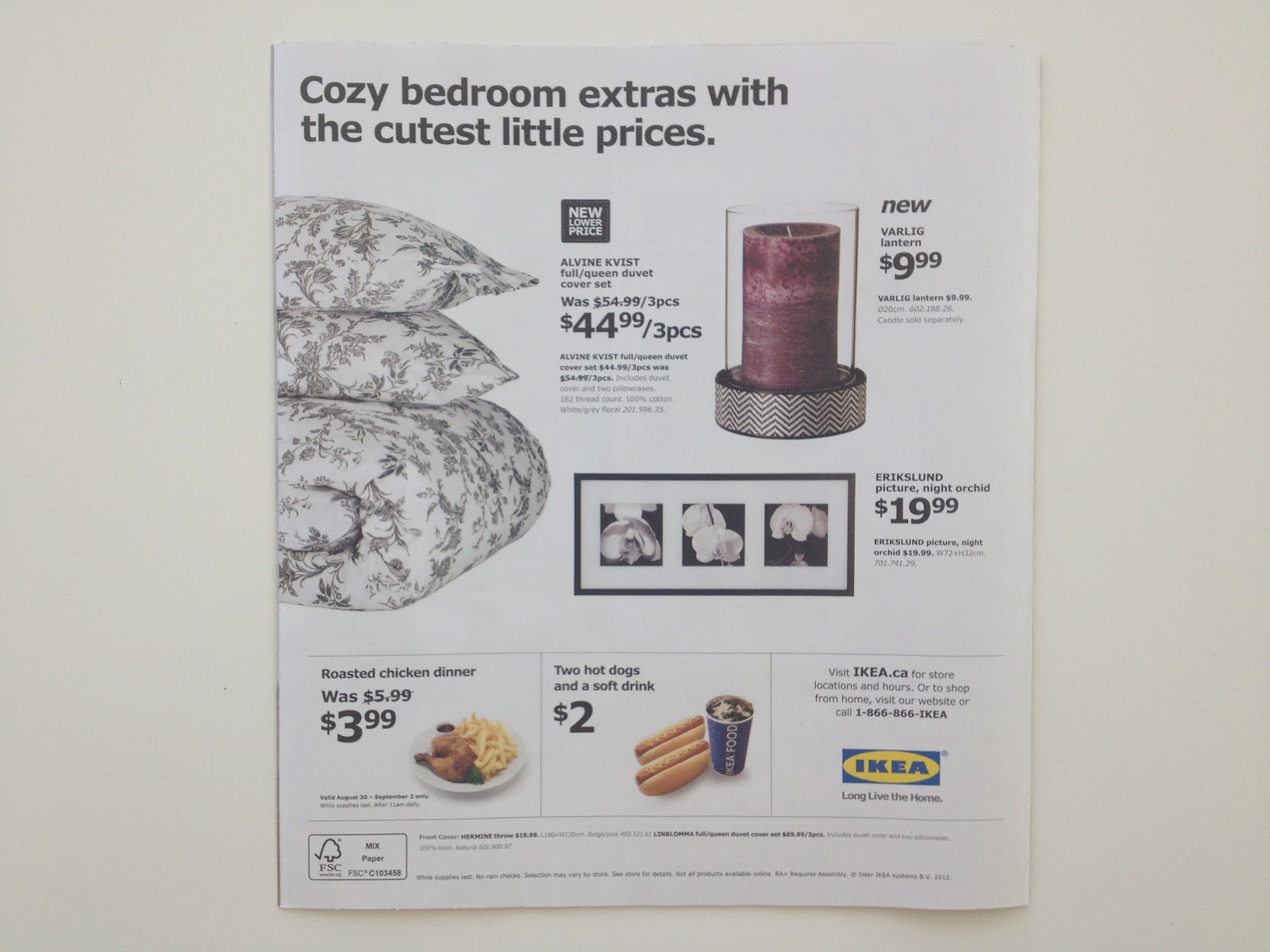 Did you get one of these IKEA flyers in the mail yet? If so, you should think of two things. 1) Great deals on stylish furniture, and 2) Me slaving away to entertain you with a few short words that convey style, savings and selection, all at the same time. You'd be surprised at how particular IKEA is about having just the right headlines for their flyers. But after many back-and-forths, here are my 3 headline masterpieces! Now, I just have to figure out how to make my condo look like these photos.